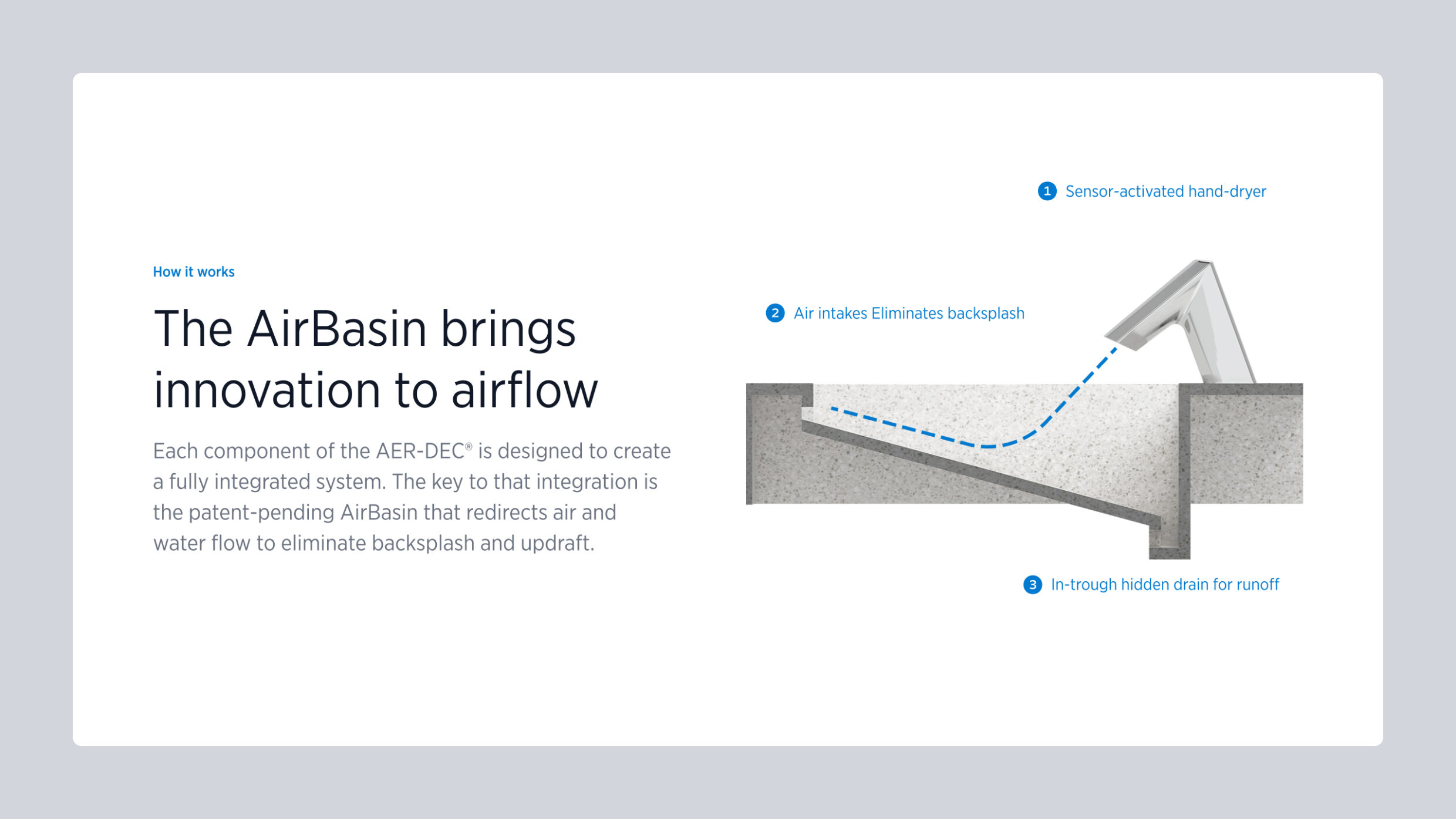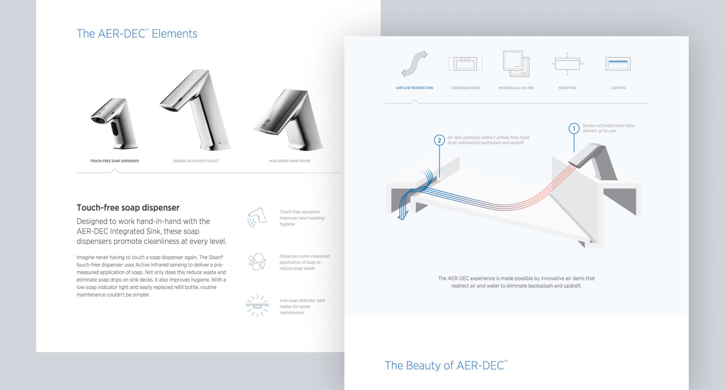 Sloan’s AER-DEC integrated sink system is a game-changer for modern restroom design. It merges the faucet, soap dispenser, and hand dryer into a single, streamlined deck. This wasn’t just a product launch; it was Sloan’s entrance into a high-end market, winning over new customers in the A&D community.
