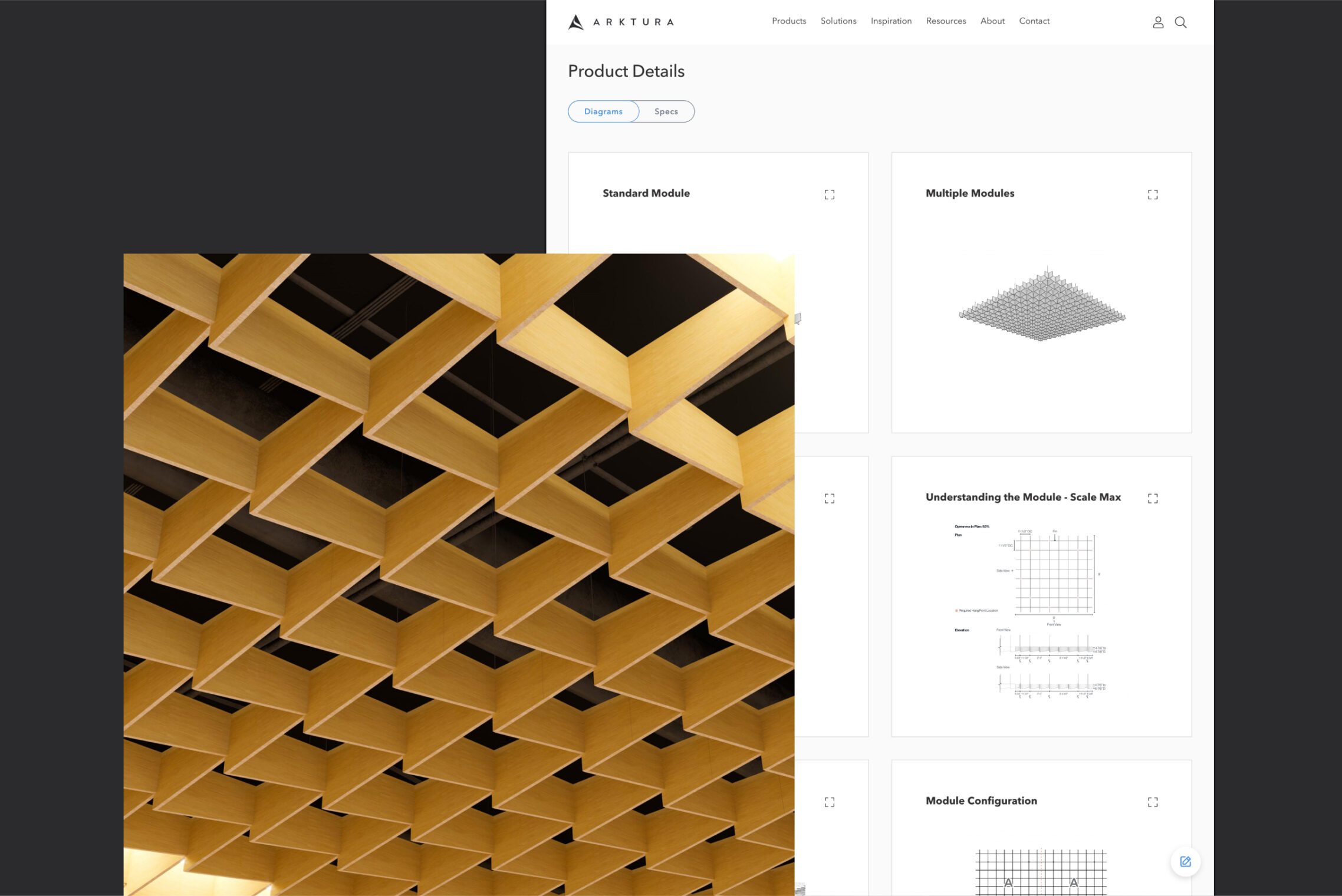 Arktura is an architectural products company that blends art and mathematics to create bold and beautiful wall and ceiling panels that elevate spaces and buildings. They needed a website to keep up with their innovative company. They wanted an experience that would enhance customer engagement, streamline product discovery, and provide opportunities for specification in new jobs.