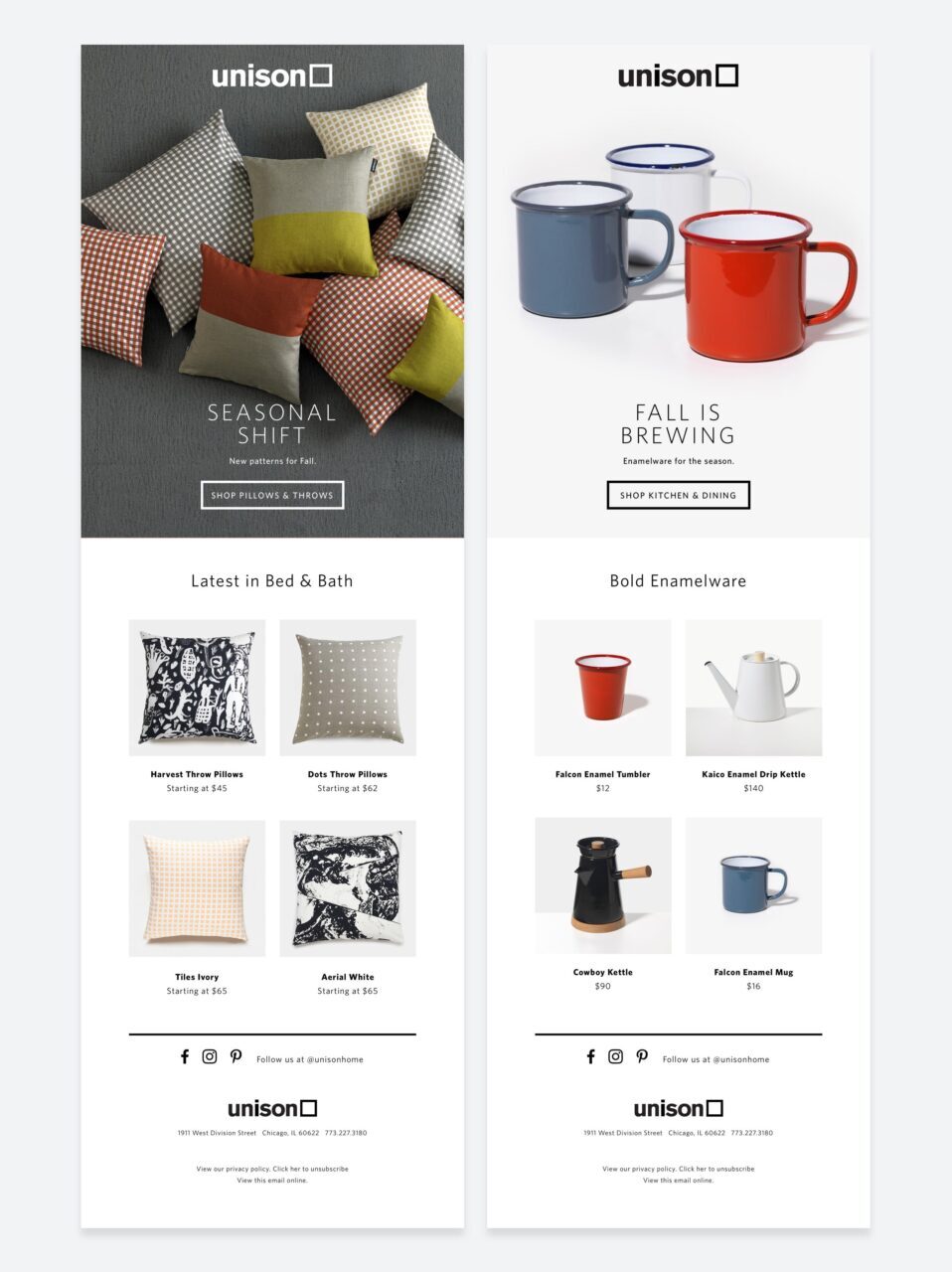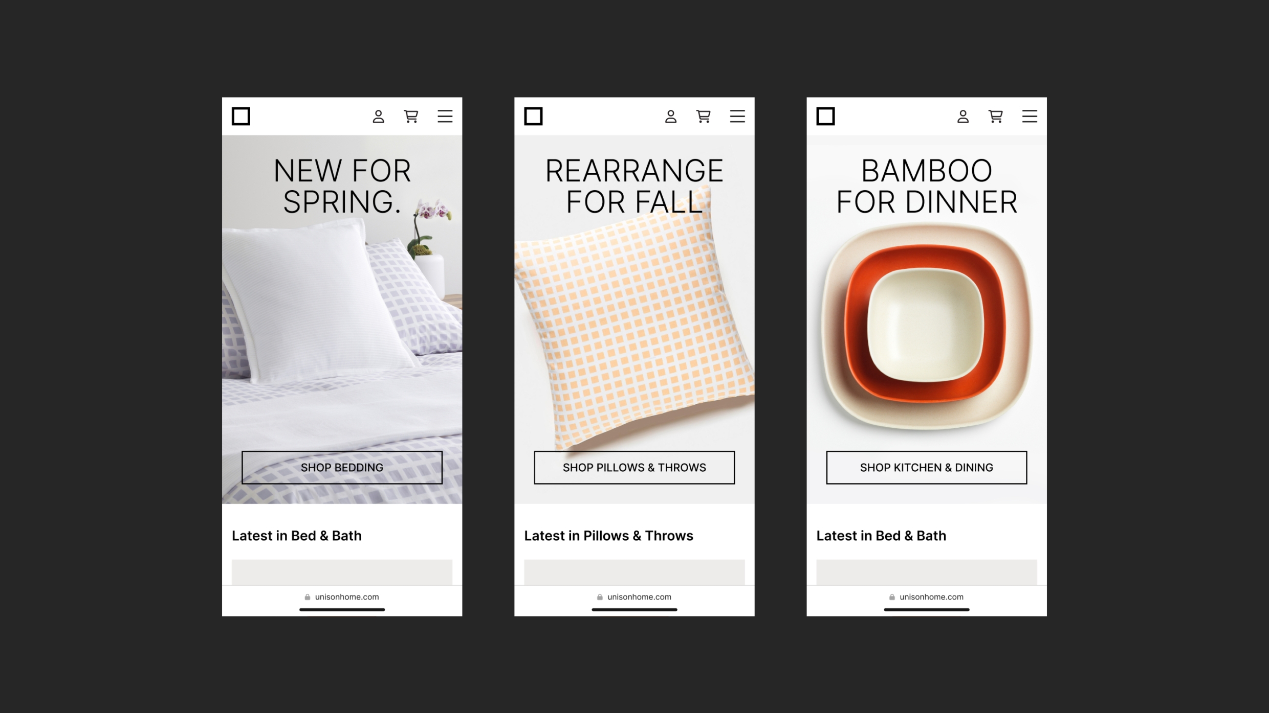 E-commerce has become one of the most essential ways for a brand to tell its story. The Unison site does just that. Clean, contemporary photography shows off their bright and bold products. We worked to create a system of colors, layouts and typography that would show off Unison’s personality, while keeping the product as the hero.
